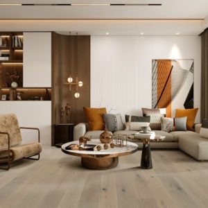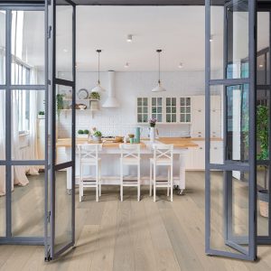 Belleme by Mullican offers European White Oak hardwoods in 1/2″ x 7 1/2″ planks with random lengths up to 6′. With a wirebrushed texture and PPG Ultra Low Gloss Finish, this engineered flooring will make a lovely addition to your home. Belleme has a substantial 50 year residential finish warranty and a 3mm wear layer.