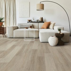 Next Floor’s Wildwood has a thick 28mil wear layer and planks that are 7″ x 60″. The full grain bevel makes this vinyl flooring look more realistic than floors with painted bevels. Made of Rigid SPC waterproof vinyl, these planks are 6mm thick. With an angle-angle click locking system, this vinyl is DIY friendly and comes with a lifetime waterproof, residential, and no cupping warranty.