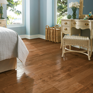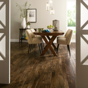American Scrape by Hartco is a solid hardwood flooring made in the USA! The boards are scraped using a random technique to ensure that they look different from each other. You’ll love the character a hand scraped floor gives and the protection against scratches and marks makes this a great option for busy households.