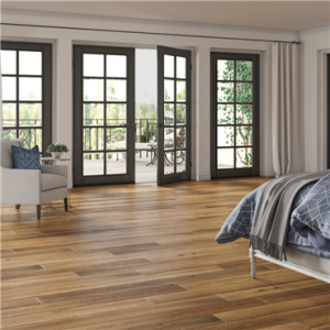 Another wire brushed option from Hartco, TimberBrushed Gold features 1/2″ x 7 1/2″ White Oak flooring. The wire brushing showcases the natural grain pattern and knots giving this flooring rustic character and making it a popular choice for modern living.