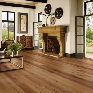 Hartco TimberBrushed Platinum offers wire brushed engineered floors in 9/16″ x 9″ wide planks. You’ll love the look of luxury these extra wide boards give. The low gloss and wire brushing allow these to stand up against scratches, scuffs, and everyday wear and tear.