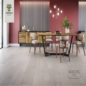 With 17 color options, Triangulo’s Nordic collection truly has something for everyone. These floors come in a variety of beautiful Brazilian Oak hardwoods with most available in 9/16″ x 7 1/2″ planks. These wide planks follow current trends in the flooring industry and give an elevated feel to any interior. The Nordic collection is environmentally-friendly and sustainably sourced with GreenGuard and FSC certifications as well as LACEY Act compliance. The Nordic collection is durable with 3mm wear layers and a 9 layer polyurethane finish for extra protection. These floors also offer a 25 year residential warranty and a 5 year light commercial warranty.